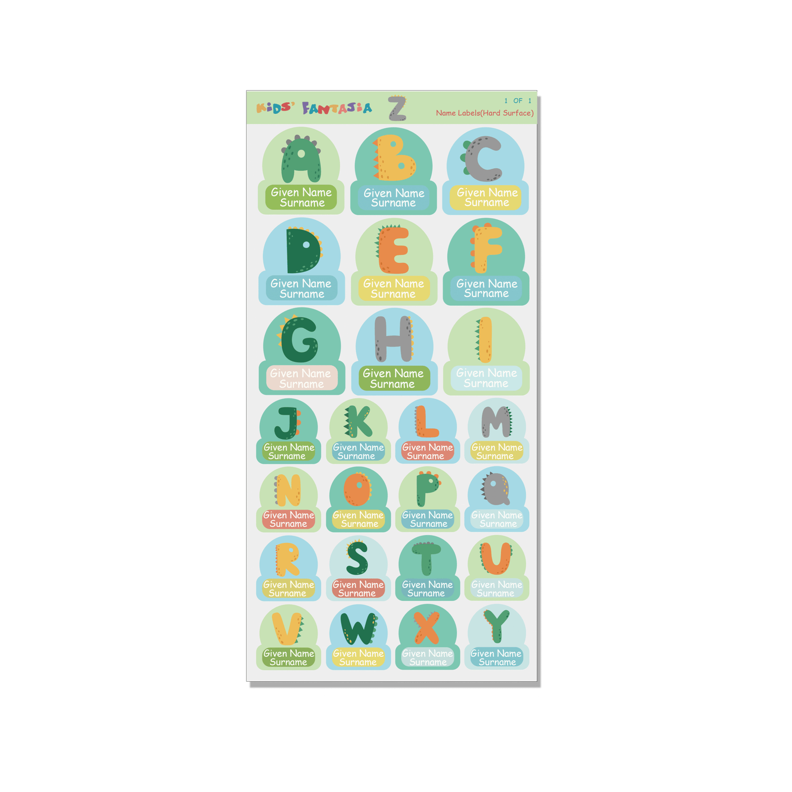 Name Lable(hard surface) -Alphabet 1