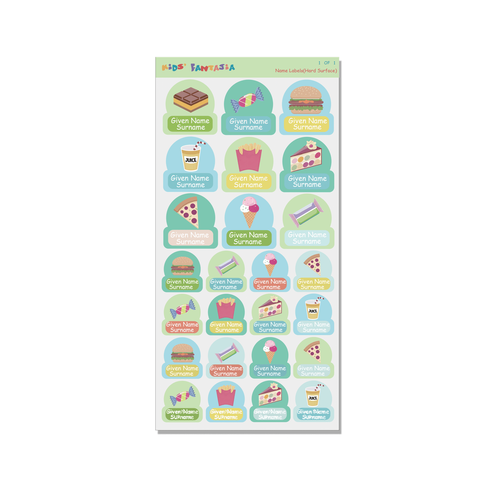 Name Lable(hard surface) -Food 1
